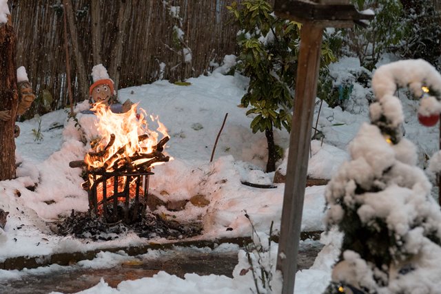 Heuer wurden wir vom Schnee überrascht, der unseren Innenhof in dickes Weiß einhüllte und uns einiges an Muskeln kostete ;).