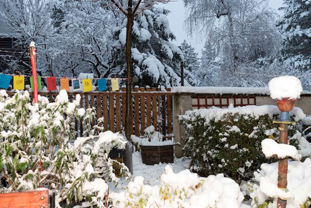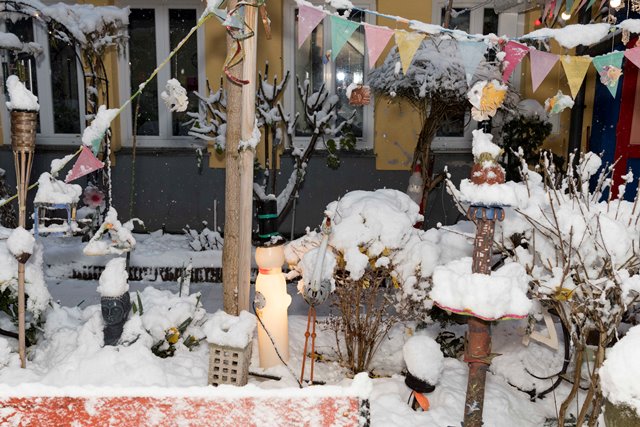 Heuer wurden wir vom Schnee überrascht, der unseren Innenhof in dickes Weiß einhüllte und uns einiges an Muskeln kostete ;).