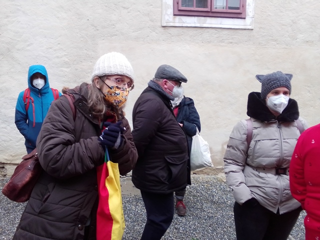 Gestärkt wanderten wir zur Burg hinauf, wo Barbara, unsere Führerin, bereits auf uns wartete. Sie hatte eine barrierefreie Tour für uns geplant, so dass alle Besucher*innen teilnehmen konnten. Im Anschluss gab es dann noch die Möglichkeit sich entweder die Ausstellung der Burg anzusehen, oder sich bei einem Stück Kuchen wieder ins Restaurant zu setzen.