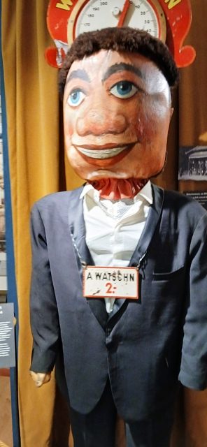 Im Würstelprater angekommen machten wir uns auf die Suche nach dem Pratermuseum und verbrachten dort dann auch einige Zeit. Es gab vieles zu sehen und zu lernen über die Geschichte des Würstelpraters, was sowohl Lustiges, Interessantes als auch Erschreckendes beinhaltete. Auf drei Stockwerken aufgeteilt, welche alle auch mit Lift zugänglich waren, bewegten wir uns, bestaunten die Ausstellungen, lasen Erklärungen und lauschten Audiobeiträgen.