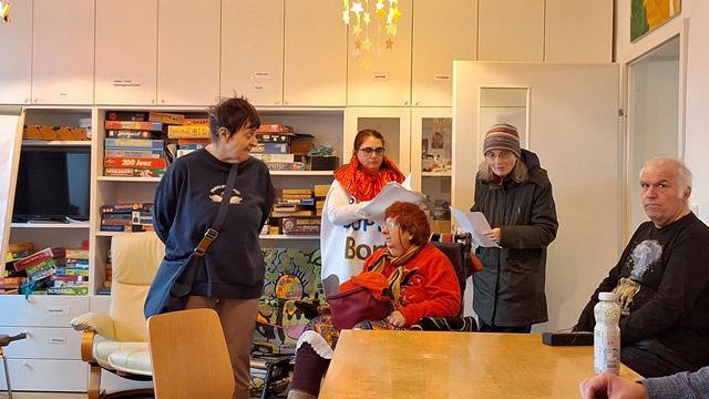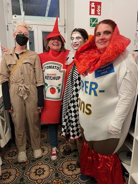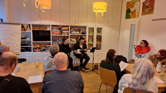 Am 14. Februar wurde besonders bunt im Regenbogenhaus gefeiert, denn das alljährliche Faschingsfest stand an. Zu Beginn der Feier startete die Theatergruppe mit lustigen Sketches und dem Vortragen lustiger Witze, was für ein Spaß. Im Anschluss gabs Würstel und Krapfen in der Snackbar. Als Abschluss der Feierlichkeiten begaben sich die Besucher:innen gemeinsam mit den Musikern von Live Music Now auf eine musikalische Weltreise. Nach diesem abwechslungsreichen Programm gingen alle gut gelaunt und vollgegessen wieder nach Hause.