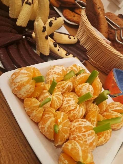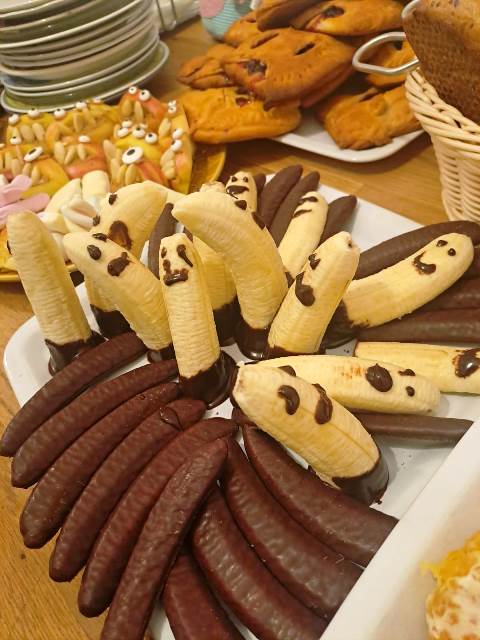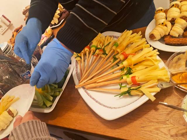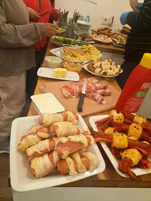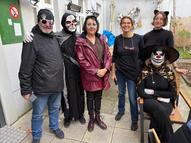 Ja wir verkleiden uns gerne :), zumindest einige von uns. Natürlich darf jeder auch ohne Kostümierung mit uns Halloween feiern. Es gab gruseliges aber köstliches Essen und sonst war der Tag eigenlich ganz „normal“ :).