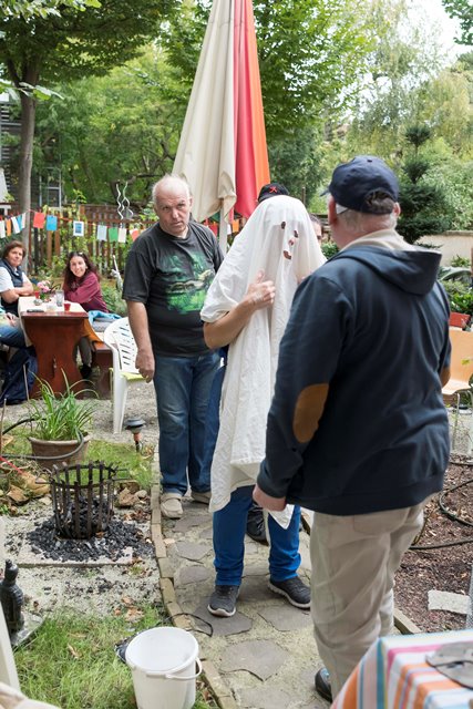 Bereits um 10 Uhr füllte sich unser Innenhof mit Gästen, die gespannt auf das Programm warteten. Nach den Eröffnungsreden von Fritz, Fr. Haidler und Dani begann auch schon die Lesung der Texte aus der neuen Herbstausgabe der Regenbogennachricht.