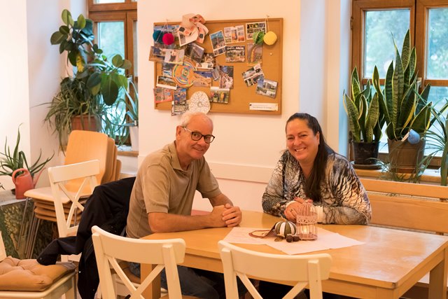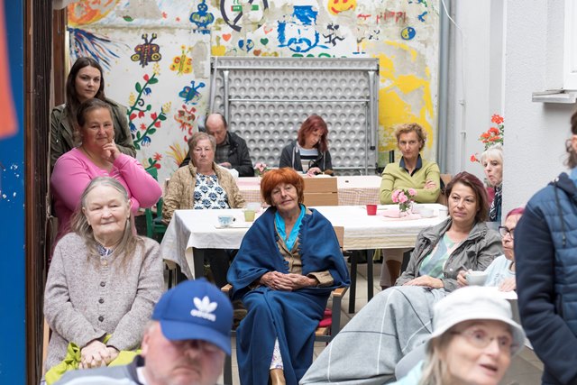 Bereits um 10 Uhr füllte sich unser Innenhof mit Gästen, die gespannt auf das Programm warteten. Nach den Eröffnungsreden von Fritz, Fr. Haidler und Dani begann auch schon die Lesung der Texte aus der neuen Herbstausgabe der Regenbogennachricht.
