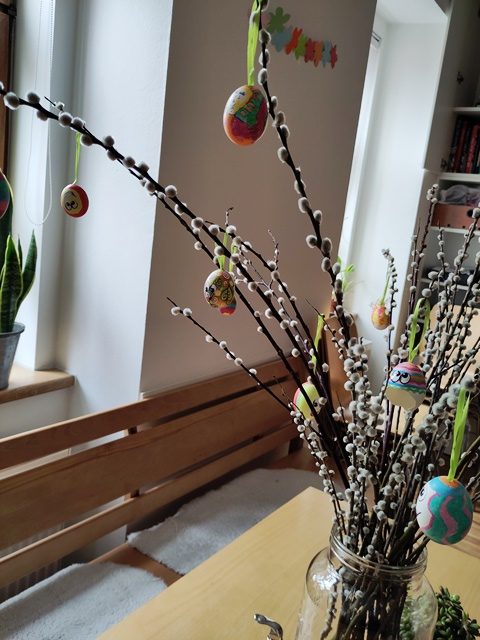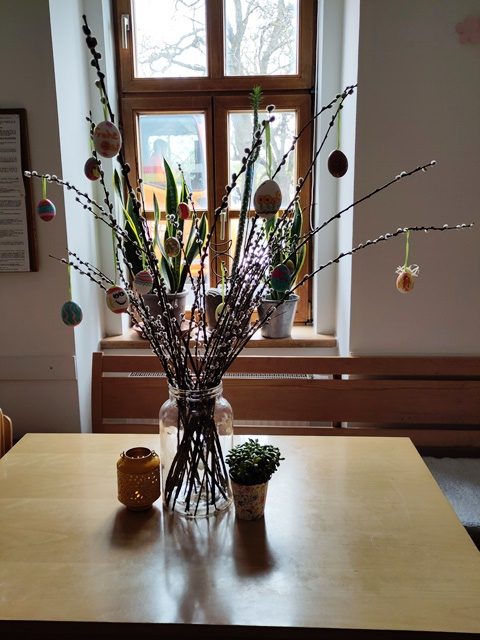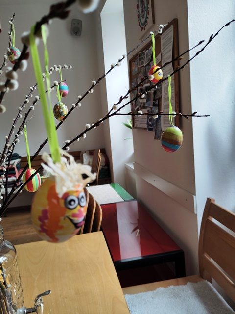 Wie jedes Jahr gibt beginnt unsere Putzwoche zuerst eimal mit dem Ostermontag mit einer richtigen Osterjause, mit Schinken, Kren, Osterpinzen und vielen bunten Ostereiern, auch sind viele Osternesterln im Garten versteckt, vollgefüllt mit Süßigkeiten, Schokoosterhasen und Ostereiern. Das Haus wurde festlich geschmückt und das Osterfest gemeinsam gefeiert.