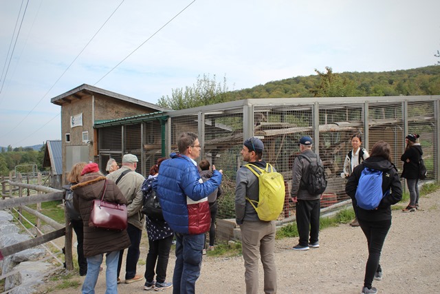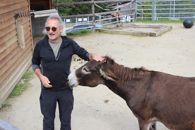 Das Wetter für den diesjährigen Putzwochenausflug war wie bestellt, es war ein wundervoll sonniger Herbsttag. Beim Treffpunkt am Bahnhof Liesing wärmten sich alle Besucher*innen in der warmen Herbstsonne auf und pünktlich um 12:13 fuhren wir mit dem Postbus zum Gnadenhof Wolfsgraben. Direkt beim Eingang vom Gnadenhof wurden wir freundlich von Herrn Thomas empfangen, der mit uns die Führung durch den Tierpark machte. Hierbei handelt es sich nicht um einen gewöhnlichen Tierpark, sondern um ein einzigartiges Refugium für Tiere in Not. Wie auch im Regenbogenhaus bringt jedes Individuum eine persönliche Geschichte mit sich – die Gründe, warum sie nach Wolfsgraben gekommen sind, sind vielfältig. Die Tiere haben sich trotz ihrer schwierigen Vergangenheit gut im Tierpark eingelebt und ein neues, sicheres Zuhause gefunden. So war auch unser Eindruck: Denn sowohl die Kamele Max & Moritz, die zahlreichen Esel, die Hofkatzen, die verspielten Waschbären und Weißbüscheläffchen, die Ponys und Pferde als auch das Rehkitz – alle Tiere waren sehr zutraulich und zahm. Am Ende der Führung lernten wir schließlich auch noch den Star vom Hof kennen – ein Esel namens Frederic, der mit Weide-Stöckchen-Pinsel faszinierende Kunstwerke schafft. Der Gnadenhof war ein sehr besonderer und friedlicher Ort, einige von uns wären gerne noch länger geblieben. Kurz nach 15 Uhr ging unsere Reise weiter zum Heurigen Beranek, wo genüsslich gegessen und getrunken wurde und wir schließlich mit vollen Bäuchen den tollen Ausflug ausklingen ließen.