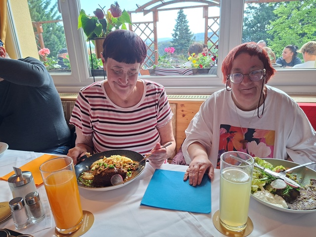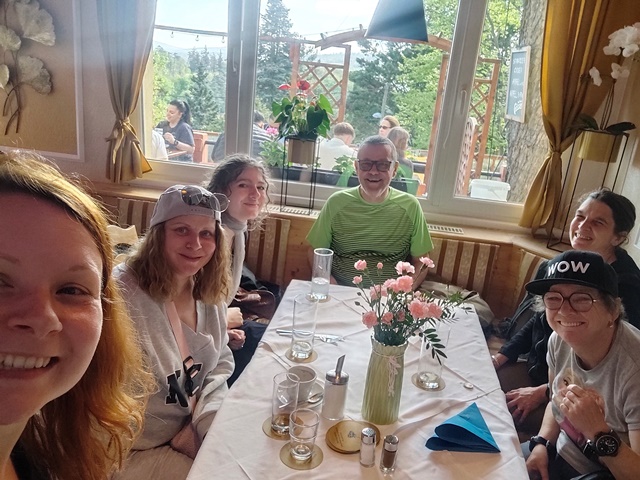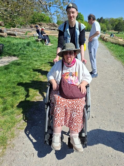 An diesem sonnigen April-Samstag machte sich eine kleine Truppe vom Regenbogenhaus auf zu den Steinhofgründen. Was als gemütlicher Spaziergang angedacht war, entpuppte sich schnell als regelrechtes Abenteuer. Querfeldein, und über Stock und Stein ging es los von der Feuerwache am Steinhof Richtung Schutzhaus Rosental. Unsere unterschiedlichen Mobilitäts-Voraussetzungen waren herausgefordert. Doch im Zusammenhelfen sind wir vom Regenbogenhaus ja geübt. So schafften wir es mit vereinten Kräften zu unserem Ziel, wo wir mit allerlei Leckereien belohnt wurden: von Kaffee und Kuchen über Schnitzel und Kaiserschmarrn war für jede*n etwas dabei.