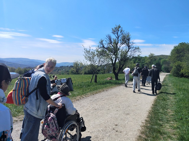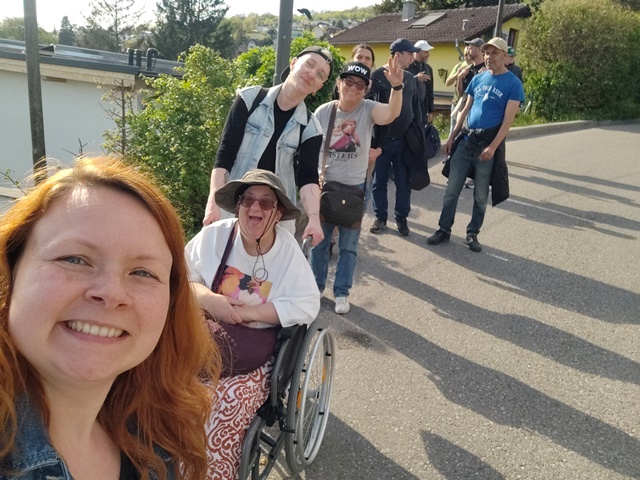 Nach der wohlverdienten Pause und der kulinarischen Stärkung ging das Abenteuer weiter: Diesmal zwar nicht über Stock und Stein, aber auch die asphaltierte Straße hielt uns auf Trapp. Denn auf dem Weg Richtung Bus und Stadt ging es sehr viel auf und ab. Doch auch hier schauten wir gut aufeinander und warteten zusammen, sodass wir alle gemeinsam wieder gut vor der Klinik Penzing ankamen. Dort verabschiedeten wir uns von den ersten Wandermäusen, und auch der Rest war dann nach kurzer Wartezeit endlich im Bus Richtung Haus und nach Hause. Der Ausflug war anstrengend, abenteuerlich und leider nicht so barrierefrei wie gedacht – aber wir hatten eine richtig schöne Zeit, in der Natur und Frühlingssonne, und werden bestimmt alle sehr gut schlafen 😀